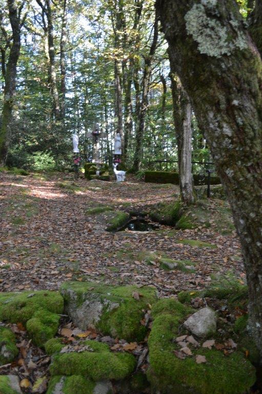 La colline Ste Geneviève et sa fontaine sont toujours un lieu de pèlerinage. Des morceaux de tissus, des fleurs sont disposés autour des statues...