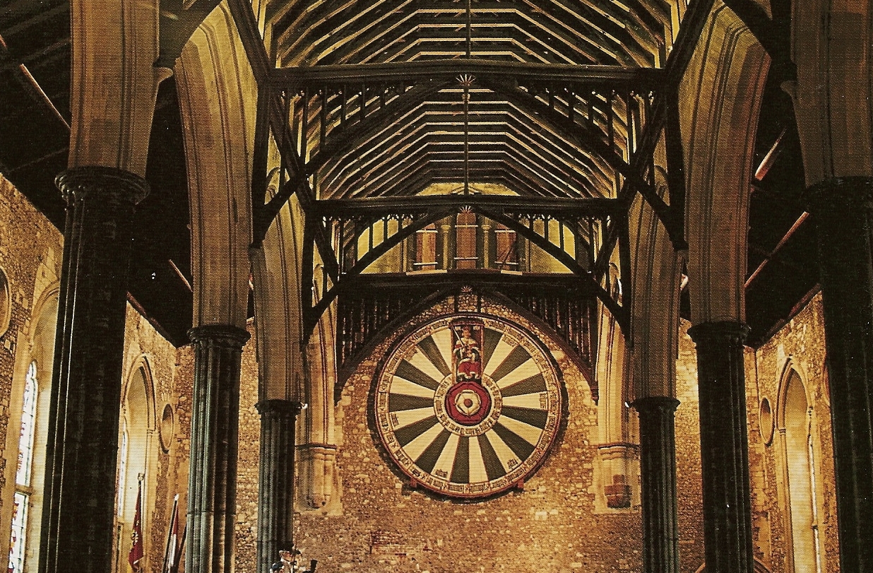 (*) La table ronde (5 m de diamètre) en chêne, est mentionnée dans des archives du 14e s. Elle est décorée de peintures représentant le roi Arthur et la liste de ses chevaliers.